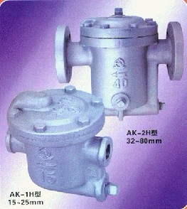 吊桶式疏水阀,如AK-5,AK-1H,AK-2H型等:切实分离气体和水份,使由蒸汽夹杂而产生的损失为零。整体结构都安装了上盖,保养管理便利。内藏过滤器,配管空间和设备费用更合理。