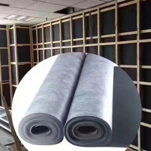 高密度隔音毡材料是引进美国先进的技术和设备,将抗老化耐腐蚀最好的无味EPDM橡胶与十几种有机矿物质按照一定比例精制而成,背部贴有一层白色吸音布,环保无异味;对低频和高频声音均有相当好的抑制作用,能有效地抑制各种振动的传播;材料可任意剪裁,施工非常方便,比起国内其他产品来具有以下优点:
